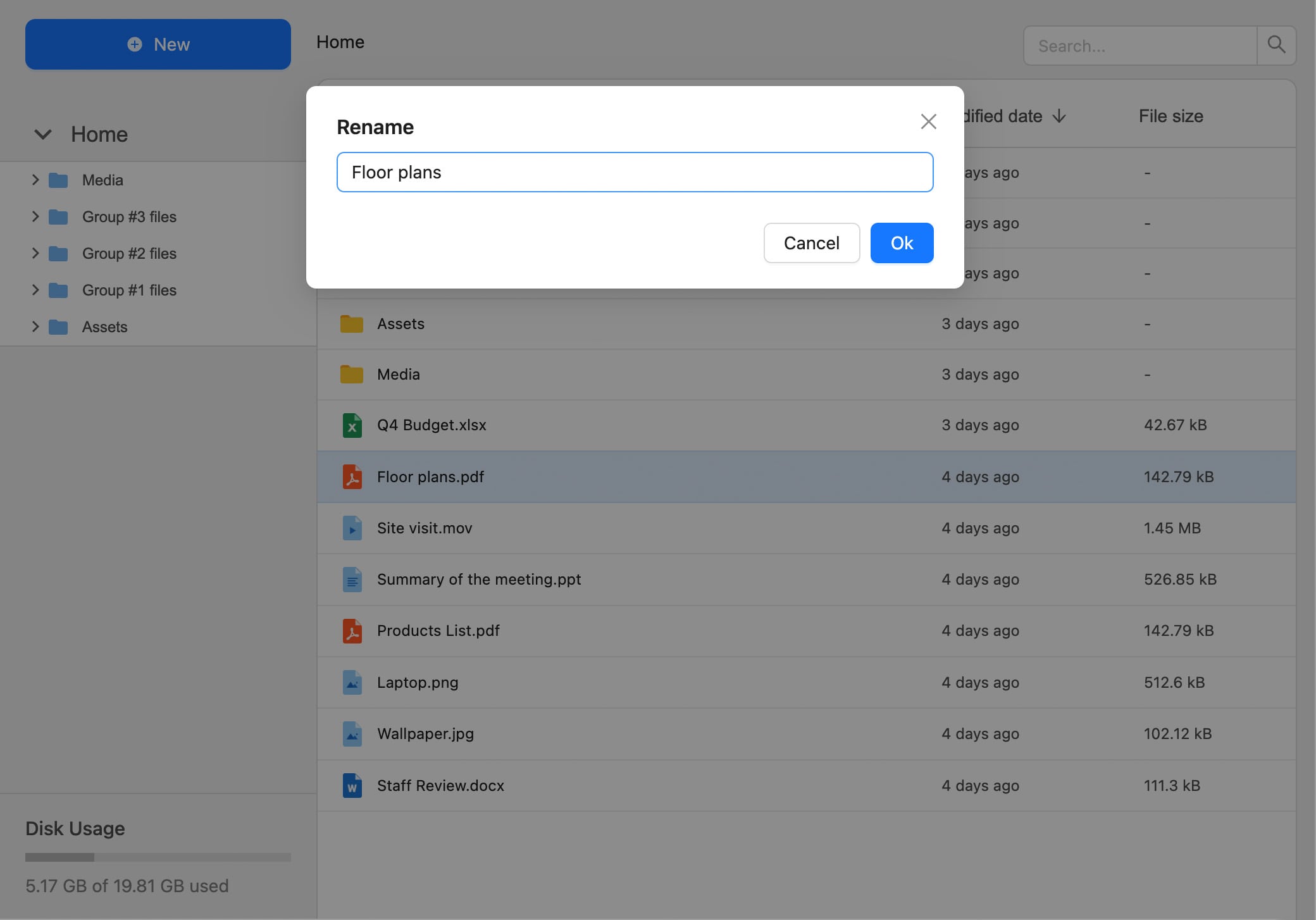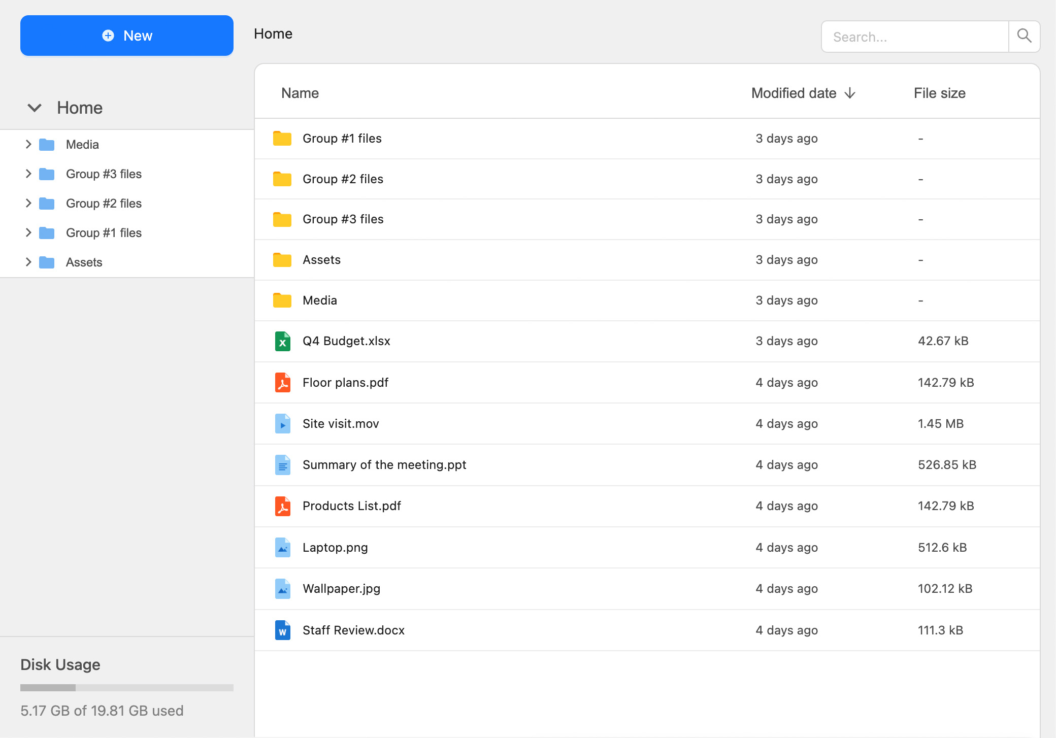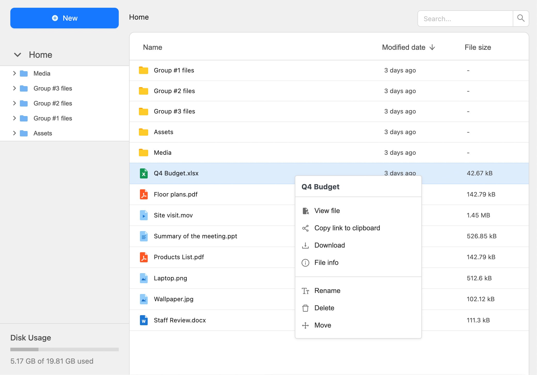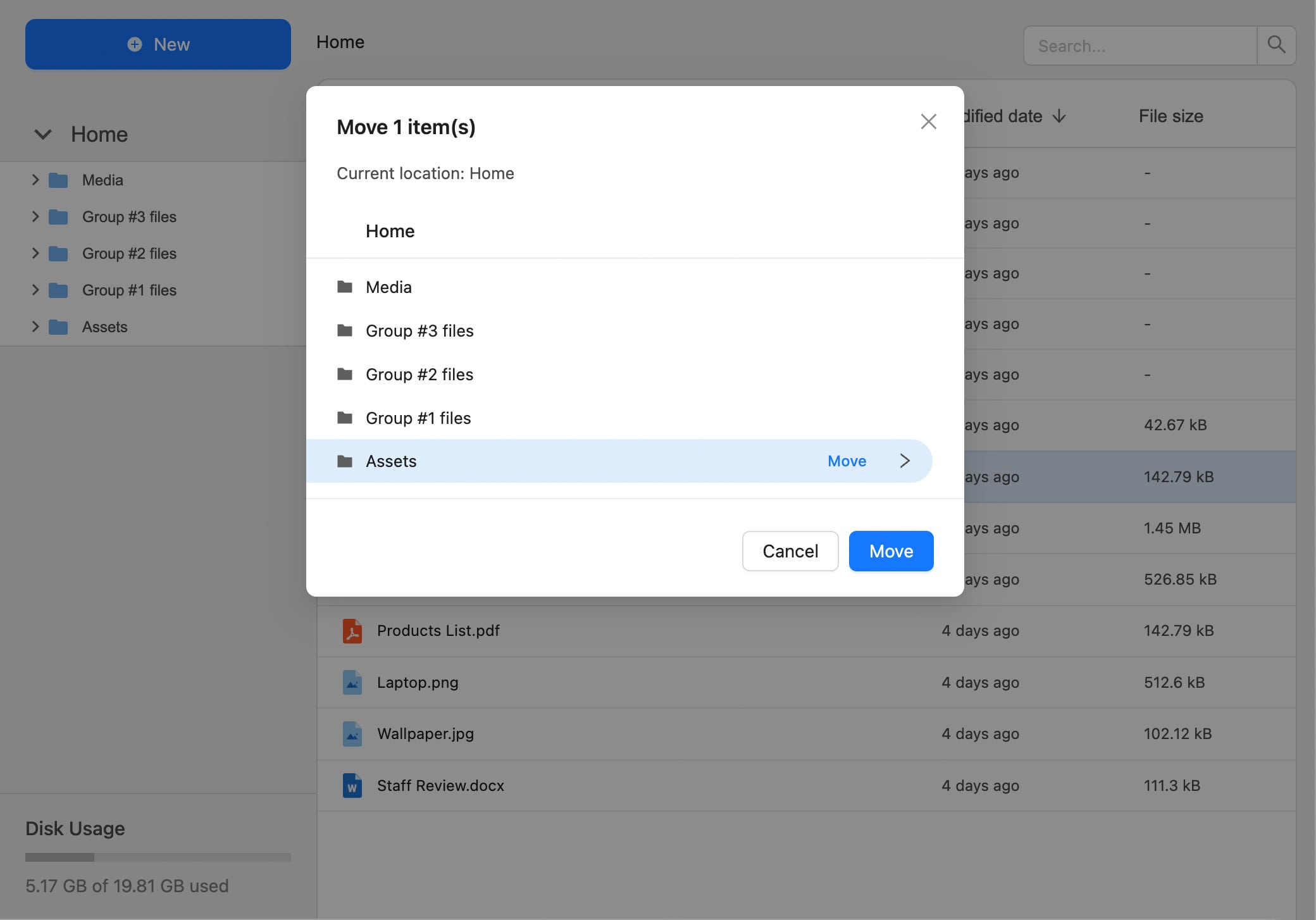 Our plugin provides an advanced file explorer that allows you to create folders, move files, use drag-and-drop functionality, and more. You can also sort and search files easily.