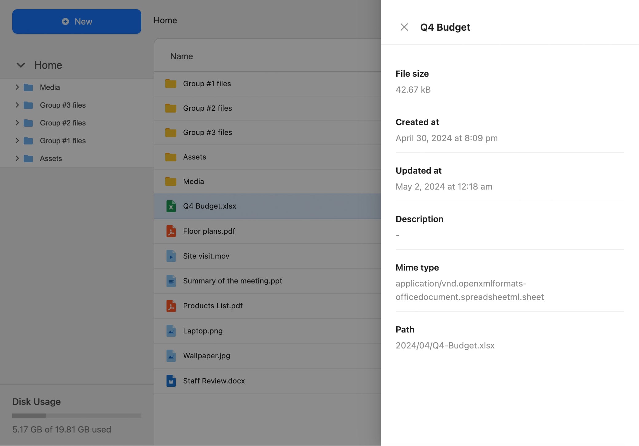 The plugin offers comprehensive file preview capabilities. You can preview photos, videos, audio files, and even code files directly within the plugin. Other file types will show an icon and name.